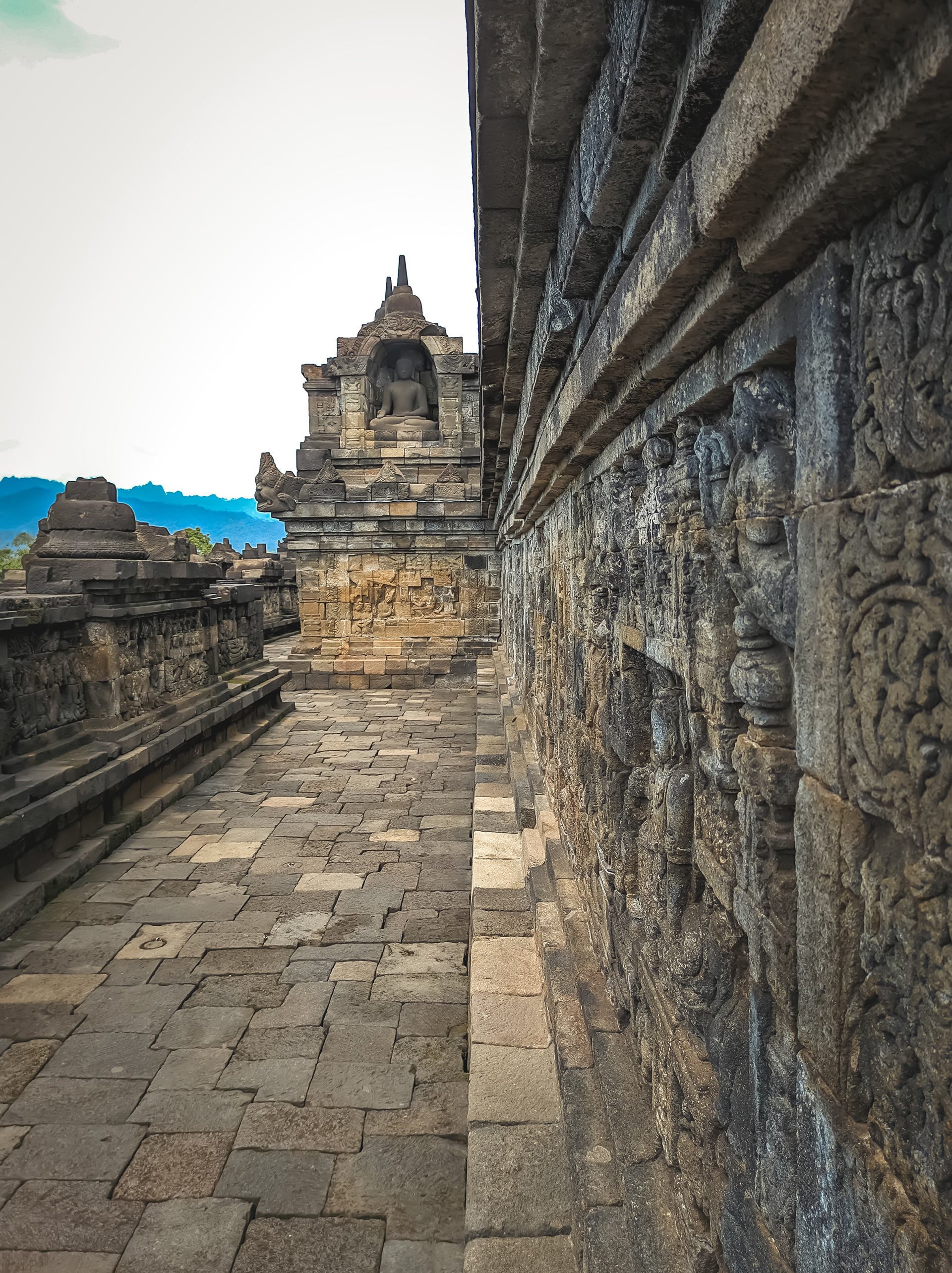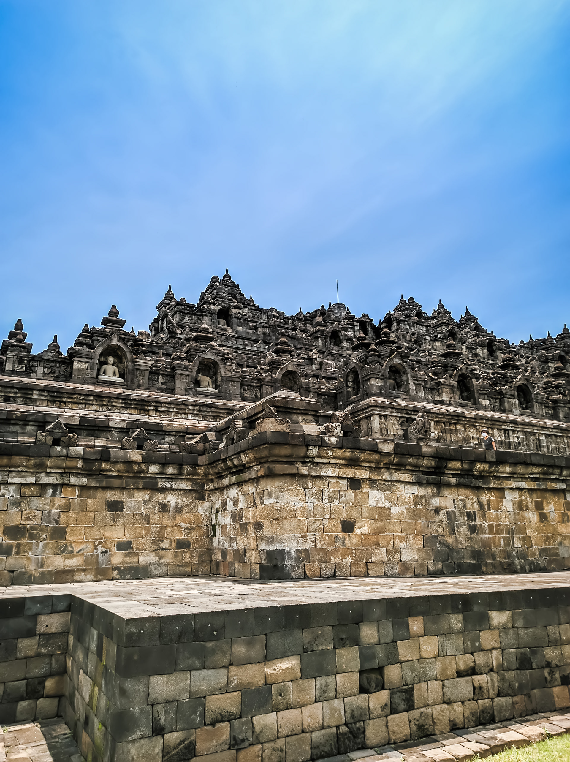 Borobudur temple from the side with a clear sky